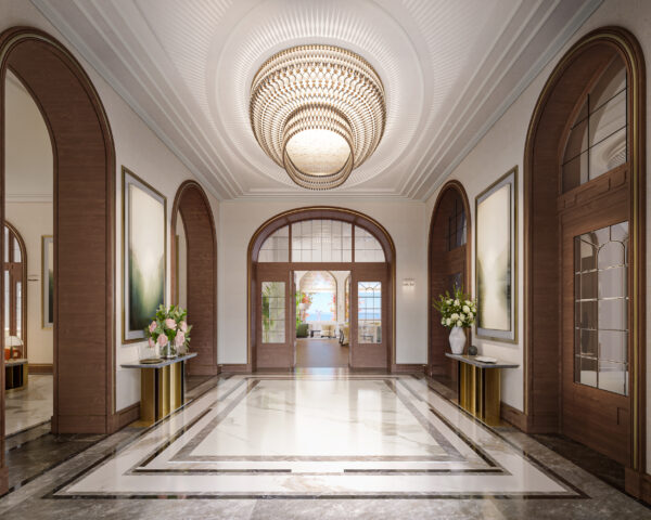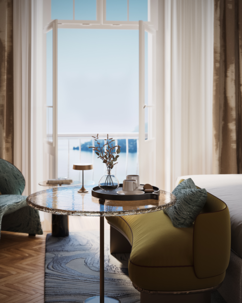 整体设计由 De.Tales 主导,设计理念围绕“湖、水、光影与空间流动性”展开,通过当代建筑语言与历史立面之间的对话,重新定义酒店与湖泊的关系。项目亮点包括:重塑并修复的主入口空间,以重新确立酒店的到达仪式感;全新打造的临湖室内泳池馆,将湖景、自然光与建筑空间融为一体;以及全面焕新的公共区域与室内空间布局,使历史建筑在当代语境中呈现更为开放、连续且富有节奏感的空间体验。整体动线设计将引导宾客在建筑、自然与记忆之间展开一段沉浸式旅程。