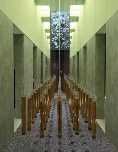 建筑师孙大勇以清晰的结构语言,构筑起树木的骨骼与枝蔓。设计源自他记忆中村口那棵承载社区生活的大树,并以抽象色彩表达品牌的迁徙与温暖。然而,当刘孜提出“加入触觉”“听听风铃”“想想气味”时,他坦言自己曾站在思维的边界:“感官是模糊的、主观的,难以标准化。”但这一次,他没有停留在建筑师的“纯粹性”捍卫中,而是选择换一种方式思考——“真正的设计,或许不是在完成一个完美的作品,而是在创造一个能够持续生长的生命。”