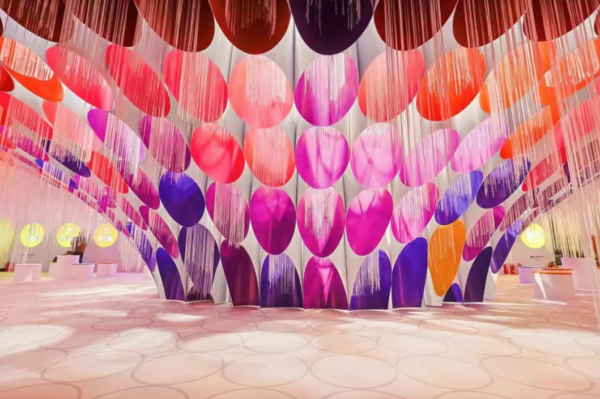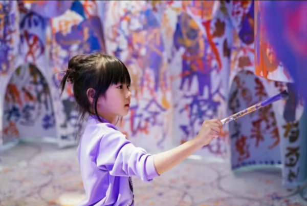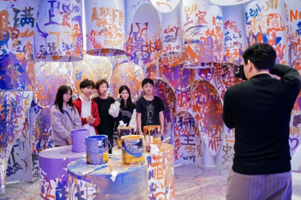 整个装置最具公共精神的,是那个名为“色彩树洞”的共创板块。每一位到场者都被邀请执笔,用源自加拿大的MF环保涂料,在特定的互动区域留下属于自己的色彩笔触与愿望。这些个体的、瞬间的痕迹,随着展期不断汇聚、层叠、交融,最终共同形成一幅持续“生长”的集体画卷。孙大勇将这一过程称为“一种来自大众的公共设计”,它让材料的呈现,第一次如此诚实地与人的情感痕迹绑定。