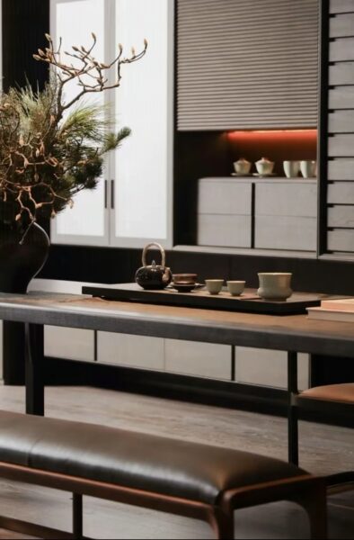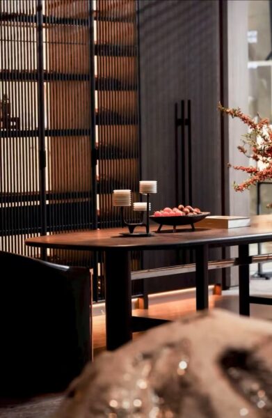 “我们并非复刻传统形制,而是建构属于当代、指向未来的‘中国家’。在风格标签泛滥的今天,讨论雅致东方或摩登东方已失去意义——家的本质,是安放灵魂的容器。”梁建国的这一理念,贯穿了整个展览的脉络。他与刘道华联袂执笔,以《园冶》“虽由人作,宛自天开”为哲学基底,提炼中国四合院“围合与开放”、“藏与露”的智慧,并将其转化为现代高定的空间语言。在梁建国建构的美学体系中,“界、域、关系”三者形成了精妙的辩证:空间从“界”的限定中生长,在“域”的延展中升华,最终在“关系”的编织中完成从物质到精神的超越。