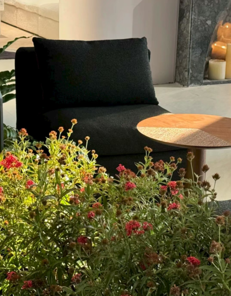 因此,泡泡沙发以圆融饱满的曲线打破条框,用包裹感营造不同寻常的松弛;空谷沙发将风与时间掠过岩层的轨迹凝固为柔韧的褶皱,沉淀出山谷的层次;风蚀茶几以刀斧般的笔触在洞石侧缘刻出凌厉肌理,在粗犷与温润的对比中诉说自然之力;云阶立灯从晨雾中取形,让光拾阶而上;晨露茶几则将晨曦间的瞬间凝为永恒。每件作品都带有强烈的地貌感,宛若将自然风景移植于生活之中。
