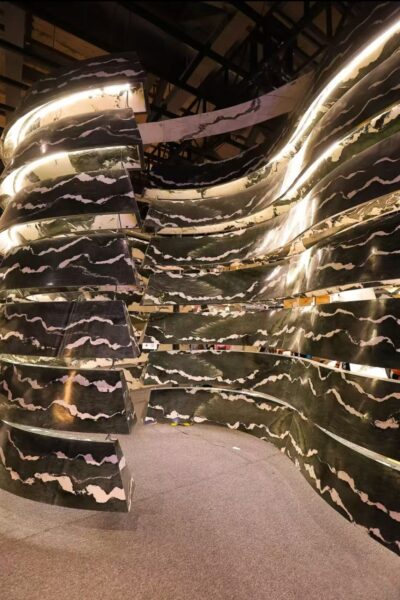 当几何脱离静止的范式,成为流动的意象,设计便拥有了超越时空的叙事力量。PGM.携手壹席设计创始人胡涛,以“Decoding Rebirth”(解码·新生)为命题,在广州设计周保利馆6D03展馆展开了一场名为“BEYOND REBIRTH”的沉浸式空间实验。这不仅是对材料的展示,更是对“自由、流动、探索”这一核心精神的完整实践。