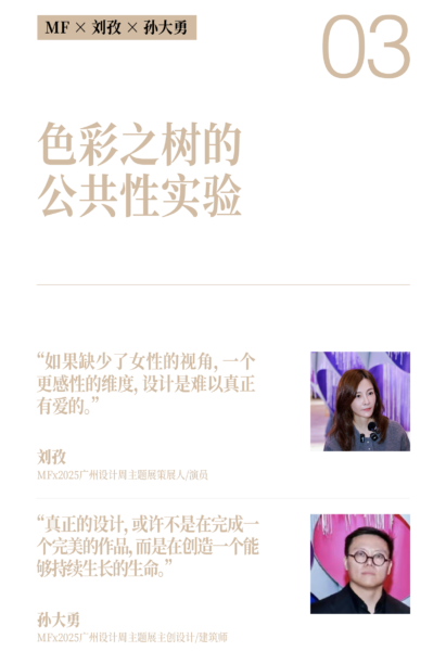 当我们把品牌的叙事汇聚在一起,会发现它们都在回答同一个问题:未来的生活,将以怎样的方式存在?无论是MAG-G×梁建国×刘道华的东方秩序、曾建龙×融舍的自然诗学、MF×刘孜×孙大勇的公共性材料、PGM.×胡涛的板材未来生态,还是新豪轩×唐忠汉的建筑尺度,它们都在构筑一个更深刻的共识:未来生活不再是单一美学的胜利,而是人与世界之间更温柔、更深刻的联结。当材料被重新理解,当尺度被重新定义,当自然重新进入生活,我们得以在这样的设计语境中重新学习一种更亲密、更自由、更人文的生活方式。每条路径独立而完整,却又相互呼应,共同绘制出广州设计周2025的当代生活美学全景,让观者在空间与材料、光影与比例、自然与人工之间,重新感受到生活的深度与温度。