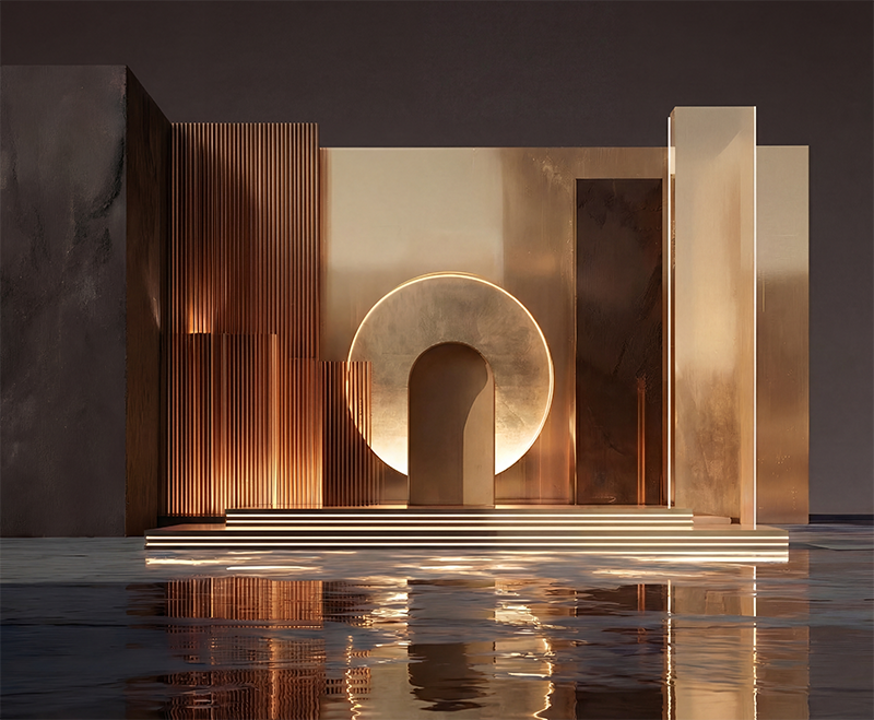 意大利创造永恒之物的天赋,将在“奢华之道”(13–15号馆)再次彰显。其核心是巴黎Maison Numéro 20工作室在室内设计师奥斯卡·卢西恩·奥诺(Oscar Lucien Ono)指导下创作的装置 Aurea, an Architectural Fiction 。这座虚构酒店以一系列叙事性空间展开,融合室内设计张力与艺术视野。观众将穿梭于对比鲜明的场景:从葱郁的冬季花园到超现实餐室,从私密雪茄房到带壁炉的图书馆。所有空间皆融入同一梦境,室内设计化为情感与戏剧的语言。整体氛围调和了装饰艺术风韵、电影意象、东方符号与超现实主义笔触,在一段沉浸叙事中,光线成为被建筑过滤、反射与雕琢的物质。每一处细节,从材质到陈设,均贯穿着可持续的考量——诠释一种将奢华归于生活艺术本真的自觉意识。