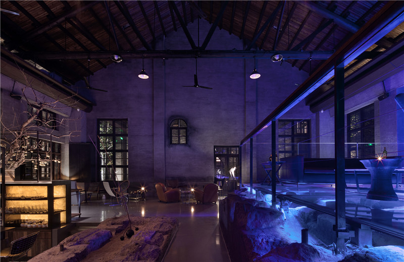 A:新建筑内部与老糖厂公共空间不仅一脉相承,还存在对比关系。老糖厂本身拥有旧厂房、工业元素,整体力量很雄厚,由其改造成的公共空间自然显得比较硬朗,需要加入当代性进行平衡。因此,我采用了较浓烈的色彩,将艺术性做到极致并焕发新的能量,于是产生了红色大堂、金色书吧、蓝调酒吧,钢板锈色餐厅……