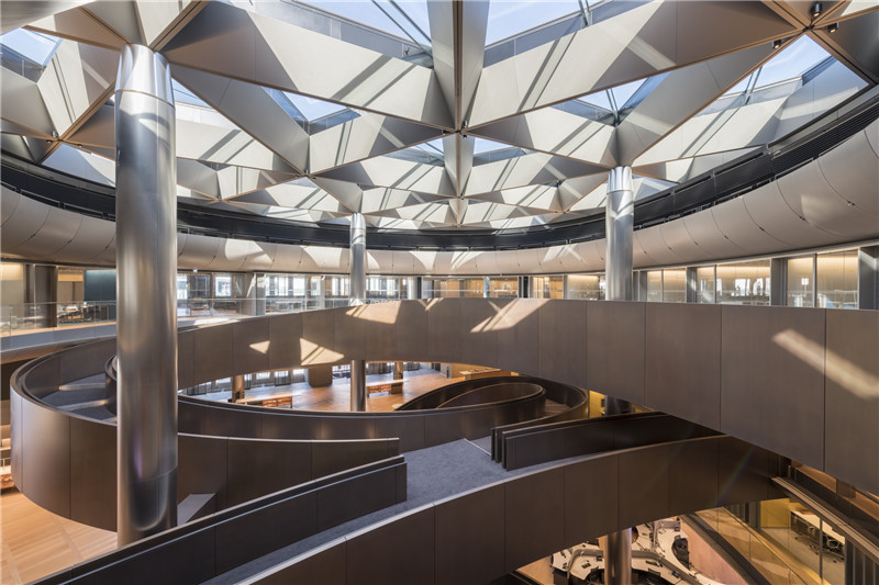 ▲ 一座6 层高的旋转楼梯回旋、缠绕在建筑内部,增加了空间戏剧性。