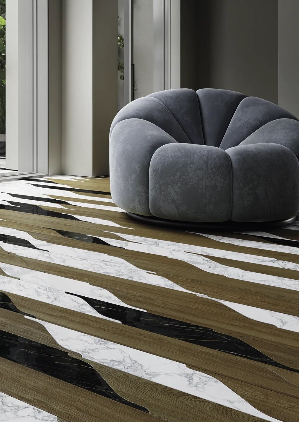 随后,Jacopo 还着重分享了Pininfarina的三个产品和室内设计项目案例。除了沿袭自汽车设计的创新与优雅,Pininfarina在建筑与室内设计中还秉持“美丽+科技=影响力”。在Miraggio项目中(Miraggio是Pininfarina为在意大利最大的木制品经销商Corà设计的新木地板系列),Jacopo展示了几款地板设计及其在室内空间的应用;这些应用了不同材质、图案、颜色的木地板,不但适用于居住、办公等不同功能的空间,还可以区分和分隔作为室内空间不同区域,甚至,由于它们在材质上的创新设计——例如天然木质或者木质与陶瓷材质的融合——也在模糊室内与室外的界线。值得一提的是,由于它们富有动感的图案拼接设计,它们甚至会激发人们在上面“走起来”的冲动。除了产品设计,Jacopo还分享了几个建筑与室内空间设计,包括2022年位于香港的新作THE ITALIAN CLUB海鲜餐厅以及在巴西圣保罗的CYRELA项目以及位于墨西哥图卢姆小镇的ALDEA UH MAY项目。