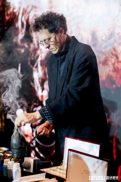 作为全球知名的调香师,对古老东方的香道传承、神秘西方的香料使用溯源,西莱诺·切洛尼在东西方调香艺术的交汇处凝练出独属于自己的风格标识与创作语言,既注重现代技艺的运用,也尊重传统文化的深厚底蕴。他深知香气的力量,不仅仅来自香料本身,更来自于与空间的融合与对话。活动现场,他带领嘉宾通过焚香的仪式沟通心灵,重新定义香气与情绪和空间的关系。